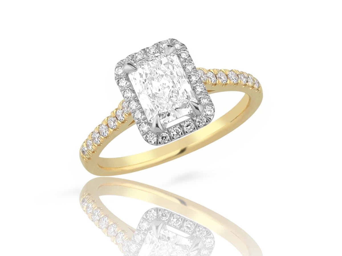 Elara Radiance zachwyca nowoczesną linią i wyrazistą formą. Centralny laboratoryjny diament o masie 1,01 ct w eleganckim prostokątnym szlifie przyciąga wzrok czystością i szlachetnym połyskiem. Delikatnie zdobiona obrączka wysadzana dodatkowymi diamentami dodaje całości lekkości, a jednocześnie wzmacnia efekt luksusu. To pierścionek dla kobiet, które cenią minimalistyczny szyk z mocnym akcentem. Doskonale sprawdzi się jako pierścionek zaręczynowy, ale również jako ekskluzywny prezent dla kobiety świadomej własnego stylu.